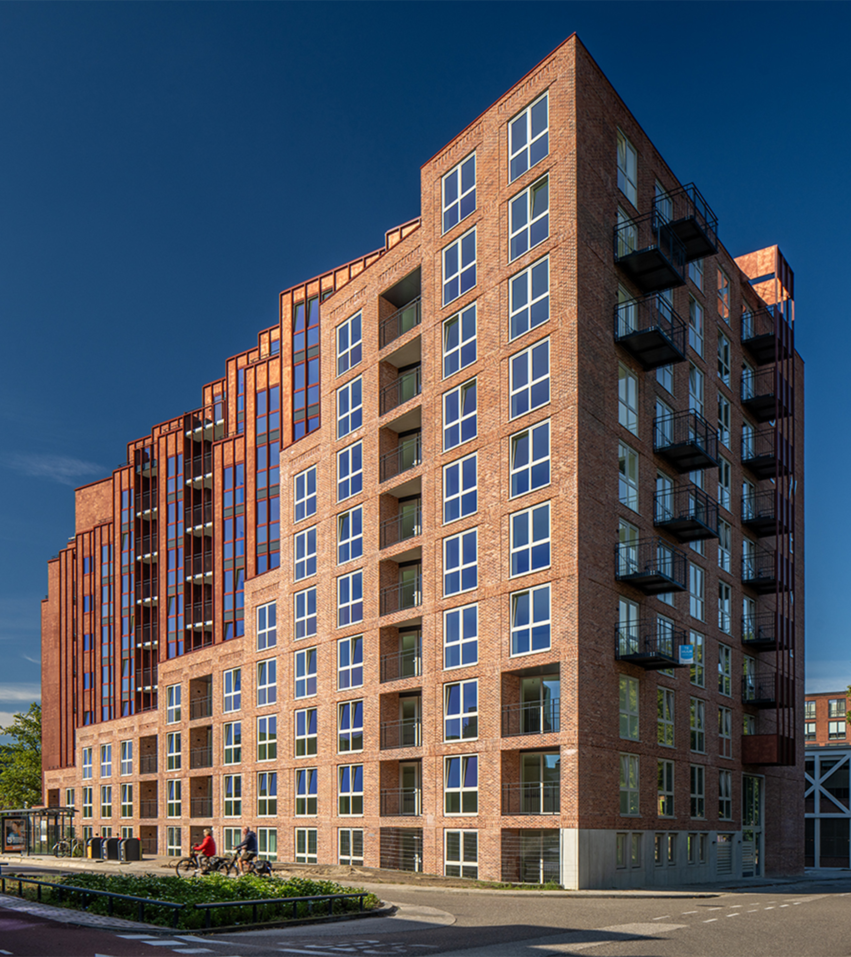The latest addition is the Weverij – a residential building set to become the fifth and final icon of Roombeek. Built on the site of a former textile hall, De Weverij directly connects to the adjacent ARTEZ building, both rooted in Enschede’s strong textile heritage.